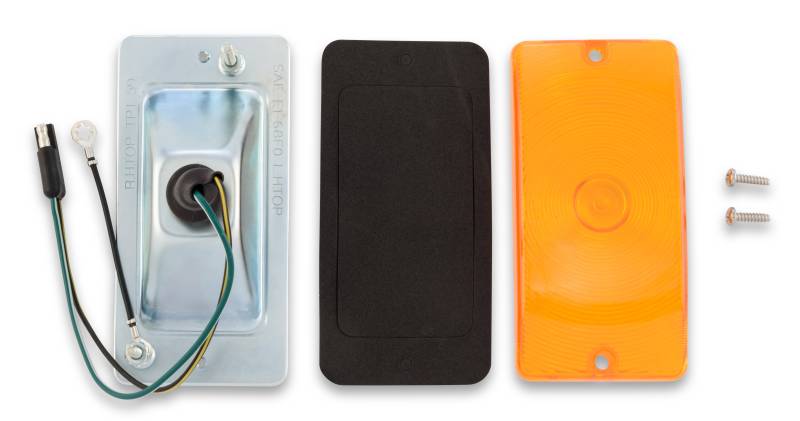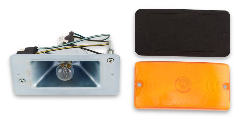 A Concours reproduction parking light assembly has all of the original markings on the housing. Designed after the Ford original, this assembly includes an 1157 bulb, lens, housing gasket; and all the hardware for easy installation.