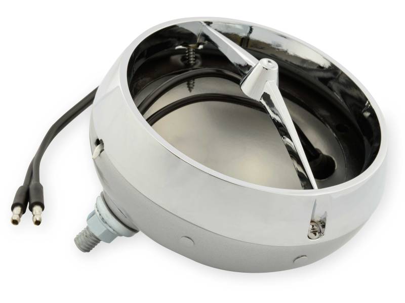 A Concours reproduction to replace your classic Mustang's fog lamp for an OEM style fit. These assemblies include triple chrome-plated rims, silver-painted housings on back, an exact copy of the wiring harness, cup mounting washer, and serrated flange nut. They also feature the correct wire exit and drain hole. Bulb not included.
