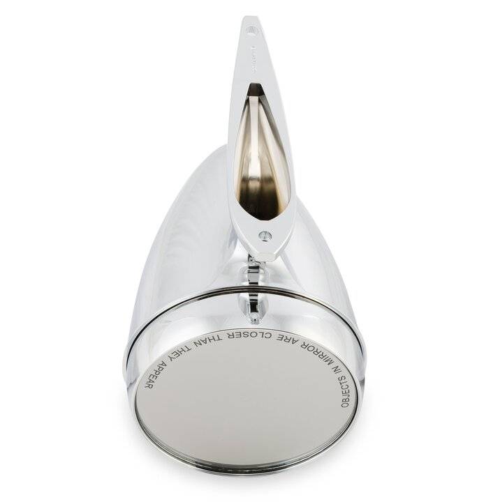 These chrome mirrors are modeled after the original Rotunda mirrors used on 1966 Shelby GT350s. All new tooling was used when designing and manufacturing this bullet-style exterior mirror. The mirror housing includes a precise spring tension system and nylon glide bushing to deliver reliable and easy positioning. The mirror is finished in a show-quality chrome that is built to last. The premium quality glass will give you a crystal clear look at what is behind you. The Chrome Driver Side Exterior Bullet Mirror comes with stainless steel mounting hardware to make installation simple. Both a contoured mounting pad for installation on a stock Mustang door and a flat mounting pad for custom applications is included.