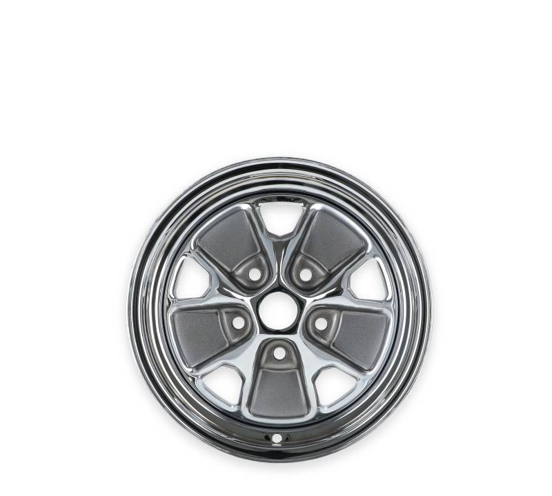 These styled steel wheels are the ideal combination of authenticity and performance. An economical option for customers wanting the factory look of an original steel wheel, these wheels offer the classic styled steel look and are a great entry-level option for the daily driver. This wheel features a chrome-plated hoop with a charcoal-painted insert. A beautiful finish constructed to last this steel wheel is the ideal combination of show-stopping style and durability to last for the road ahead. Center cap sold separately.