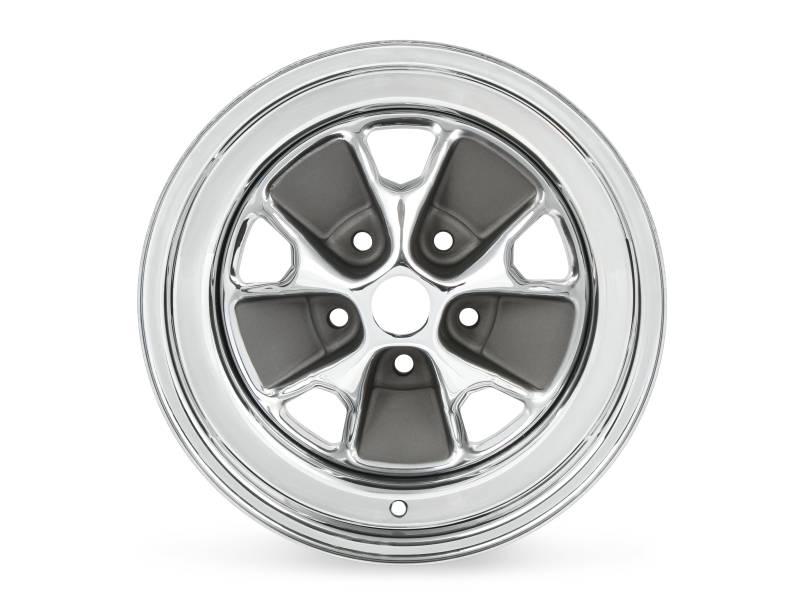 This styled Steel wheel offers an economical option for customers wanting the factory look of an original steel wheel. This full chromed wheel with charcoal center offers the classic styled steel look and is a great entry-level option for the daily driver. Center cap not included.