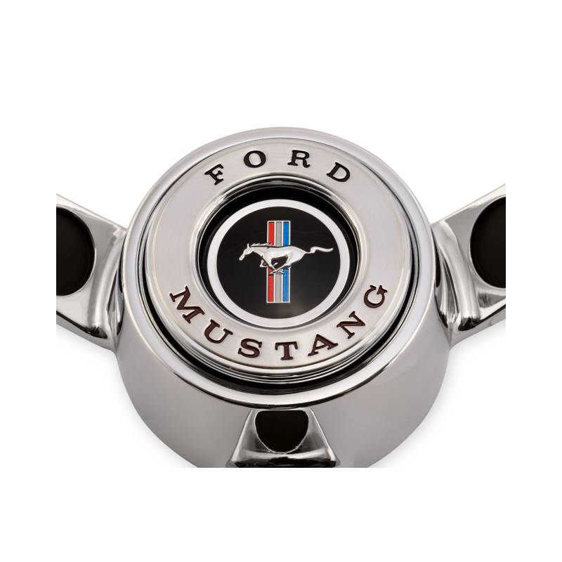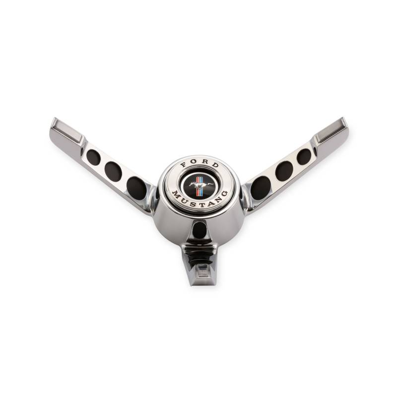 This Scott Drake Standard Wheel Horn Ring is a Ford-licensed, premium quality Concours reproduction. This product features an acrylic plastic center emblem, a chrome-plated main assembly and painted recesses, and it fits Mustangs with alternators and standard steering wheels. It's ready to install thanks to the pre-installed contact kit.