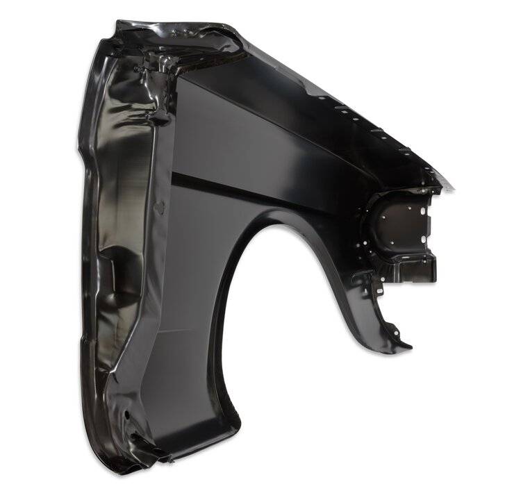 A quality reproduction fender that offers an inexpensive alternative to purchasing O.E.M. parts, with only a minimal loss in fit when compared with genuine Ford parts. This driver side fender is deburred and painted black for shipping protection.