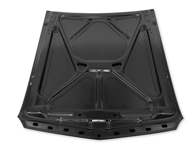 This hood is made from new tooling which offers a great fit. This affordable reproduction hood is shipped lacquered black for corrosion protection. 1965 and 1966 hoods have rolled front edges, while 1964 cars has a sharper front edge. NOTE: This is not concours correct for 1964 Mustangs due to the difference in front edge treatment.