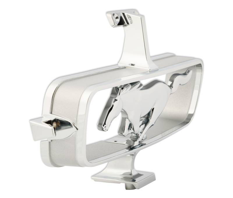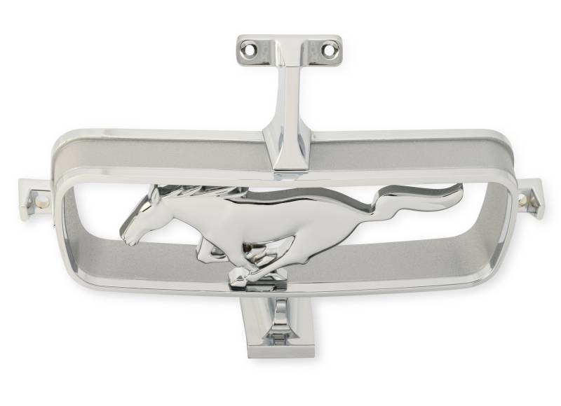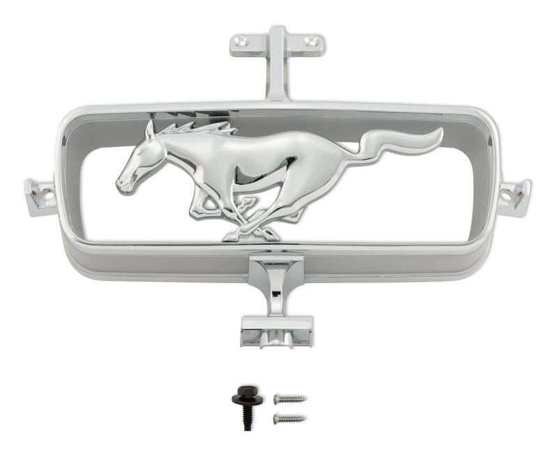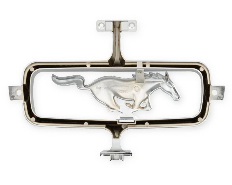 A beautiful, high-quality reproduction of the right-facing horse and corral grille emblem found attached to the grille of 1965 Mustangs. Located in the center of the Mustang's grille, connected by a grille bar and enhanced since its original production in 1965, it features a show-quality chrome finish. This grille emblem serves as a direct-fit replacement, easily installed on any 1965 Mustang with the use of a grille bar. Simply remove your old, cracked, or missing grille emblem and replace it with your new, Scott Drake reproduction.