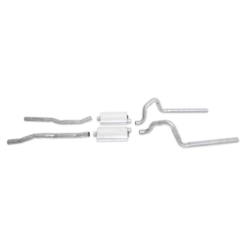 All of our exhaust kits have been test fitted on the appropriate Mustang prior to production to ensure a trouble free installation. We use only the heaviest gauge aluminized tubing available. Mufflers have correct factory brackets when needed and are also aluminized to eliminate early rust out. All Kits are compression bent just like originals for that Concours look. H-Pipes and hanger kits are sold separately.