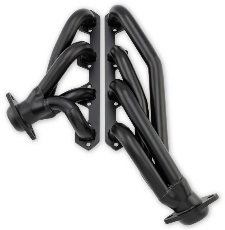 These black high temperature shorty headers are designed for your classic 1966-1977 Ford Bronco with a 289 or 302 V8 engine. They provide ample clearance for most modified suspensions and are engineered to produce strong power and torque throughout the RPM range. These shorty headers have smooth mandrel-bent 1-1/2" 16-gauge primaries that connect to 2-1/2" collectors. The flanges are laser cut and are 3/8" thick to prevent warping. High-grade hardware is included as are premium laminated metal core gaskets and heavy-duty ball and socket flanges for a leak-proof installation. The collectors also feature O2 ports for EFI applications.