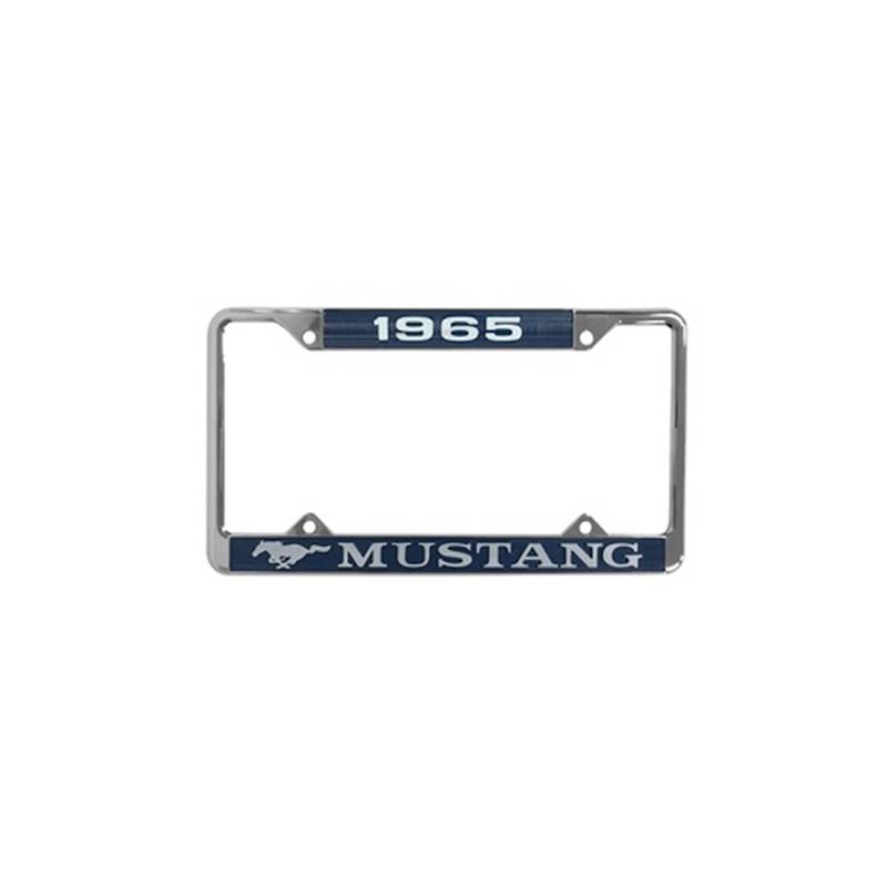 Officially Licensed by Ford, Scott Drake's Year Dated License Plate Frames are the perfect accent for your Mustang license plate. Available for 19641/2 thru 1970, these durable license plate frames feature a die cast metal, chrome plated housing, blue background and white lettering.