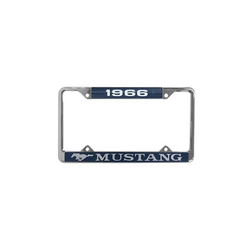 Officially Licensed by Ford, Scott Drake's Year Dated License Plate Frames are the perfect accent for your Mustang license plate. Available for 19641/2 thru 1973, these durable license plate frames feature die cast metal, chrome plated housing, blue background and white lettering.
