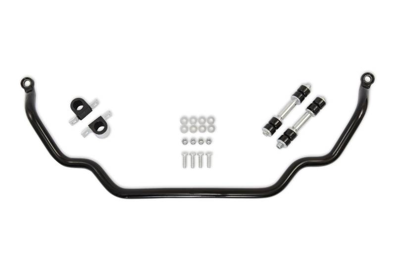 Our high-quality sway bars are made from high carbon steel with hot forged ends and cadmium plating. Kit contains black polyurethane mount bushings and links with polyurethane grommets.