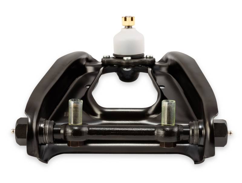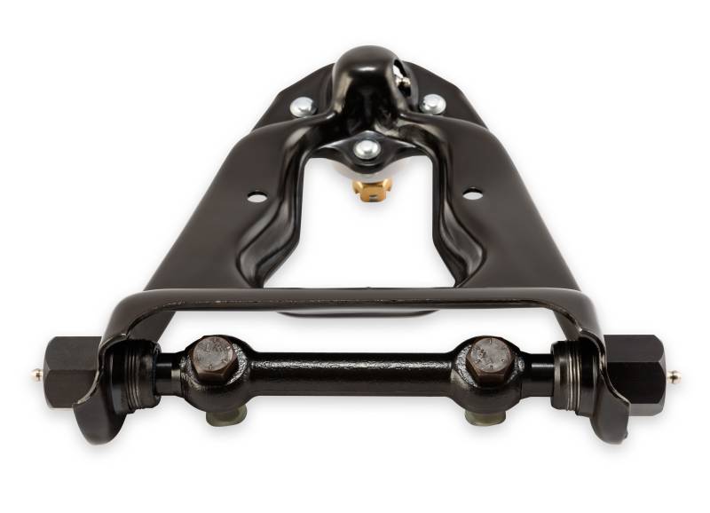 This Scott Drake Upper Control Arm is constructed from heavy-gauge steel that is stamped to form this control arm. Painted black with all the necessary components preinstalled for a quick and easy installation. The Upper Control Arm includes grease fittings for either end of the Upper Control Arm Shaft as well as the Ball Joint. Mounting nut with cotter pin, grease fittings, and lock washers are included. Sold individually, 2 required per car.