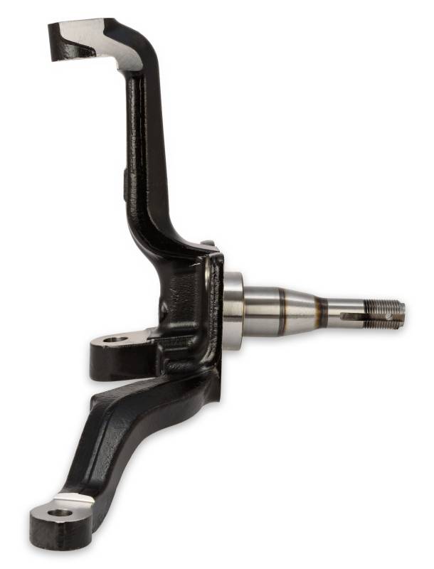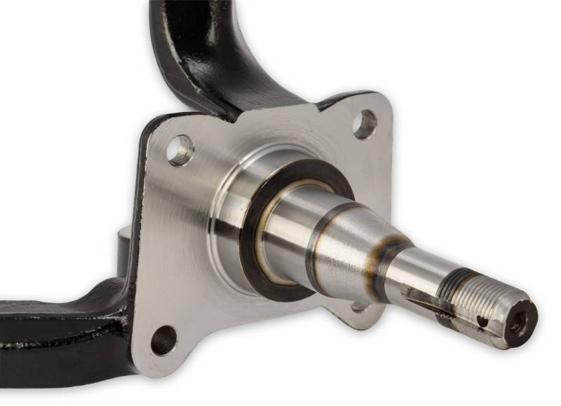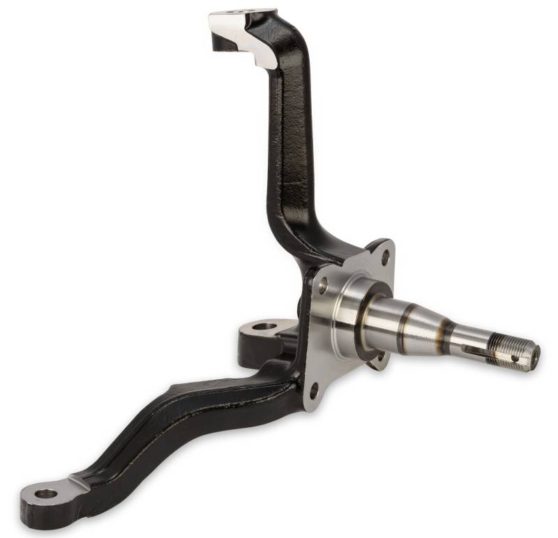 These spindles were obsoleted long ago by Ford and have become increasingly expensive and extremely difficult to find and now Scott Drake has the answer. Our Engineering team started with a set of used, but excellent condition, Ford originals, to create 3D scans which were then used for CAD modeling and then double-checked against original Ford blueprints. No corners were cut on this critical component - they were constructed from FORGED ASTM 5140 grade steel, next, we applied a protective, black e-coating, and then all mounting surfaces were precision machined. We took special care to ensure bearing tolerances were identical to Ford's. For an extra measure of safety and durability, the entire spindle is heat-treated and the bearing surface is treated with additional induction hardening. All Drake spindles are 100% Magnetic Particle Tested as well. These spindles also fit a wide variety of 1960s Ford and Mercury cars.