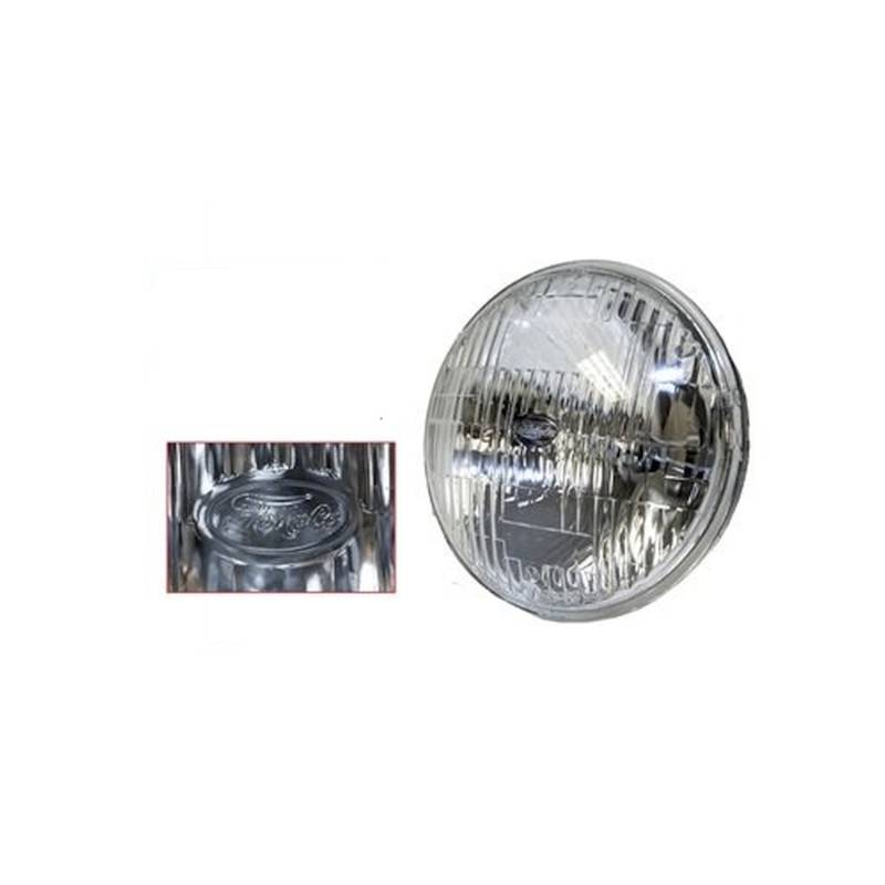 Officially licensed by Ford, Scott Drakes 5 3/4" round high/low halogen sealed beam headlight features authentic FoMoCo logo and upgraded Halogen performance. This is a reproduction of the very desirable and rare version headlamp used on most classic Fords in the late 1950s and 1960s. We took NOS new original Ford bulbs and duplicated them in appearance while improving them with halogen lighting technology. Halogen headlamps produce more than double the lighting power of original tungsten bulbs. Perfect for night driving, a great safety improvement while maintaining an original look. Over the years Ford offered two FoMoCo script versions: one sandblasted etched logo, and the other a prominent reverse raised FoMoCo logo about 7/8" wide. We chose to reproduce the rare, highly sought reverse raised logo version, which is more attractive and easier to read. Featuring a three-terminal, dual filament bulb with a 55-watt low beam and a 60-watt high beam. Fits most Fords and Mercury's including: 1969 Mustang; 1962-70 Fairlane; 1960-70 full-size Ford; 1967-71 Ranchero; 1958-66 Thunderbird; 1968-71 Torino; 1960-69 Comet; 1967-70 Cougar; 1964-71 Cyclone; 1960-70 full-size Mercury.