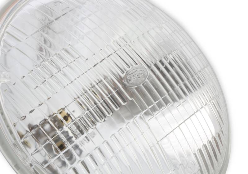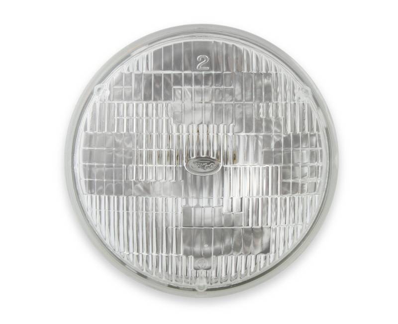 Officially licensed by Ford, Scott Drakes 7" Round Halogen Sealed Beam Headlamps feature authentic Ford markings and upgraded Halogen performance. This is a reproduction of a very desirable and rare version headlamp used on Classic Mustangs. We took new original Ford bulbs and replicated them in appearance while improving them with Halogen lighting technology. Halogen headlamps produce up to 40% more lighting power than original Tungsten bulbs, for a great safety improvement while maintaining an original look. Over the years Ford offered two FoMoCo script versions: one sandblasted etched logo, and the other a prominent reverse raised FoMoCo logo about 7/8" wide. We chose to reproduce the rare, highly sought reverse raised logo version on this bulb, which is more attractive and easier to read. Featuring a dual filament bulb with a 50-watt low beam and a 55-watt high beam. Sold individually