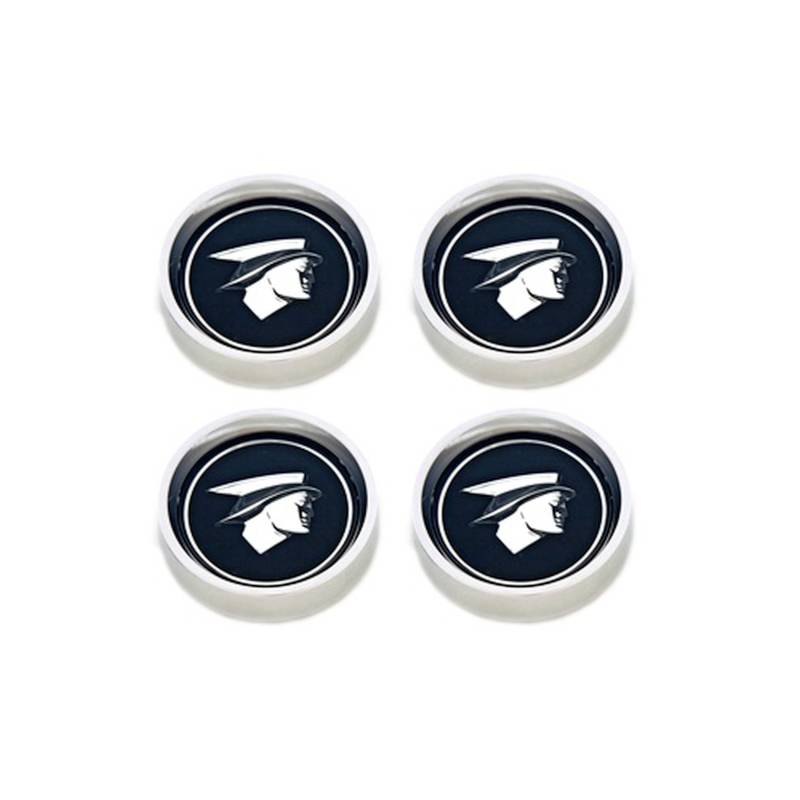 New from Scott Drake. These beautiful hub caps feature our high quality chrome bezels. Check out the details in our Mercury head lens. Sold in sets of 4. Also available in red & blue