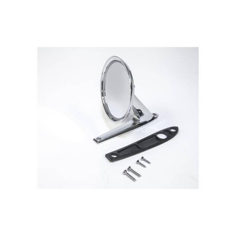 New by Scott Drake is our 1964-73 Mustang Show Quality Custom Long Base Mirror. Crafted after our popular show quality view mirror only with a longer base to cover previous mounting holes and paint lines. This custom mirror can be either used on 64-66 Cars that have predrilled holes for long-based mirrors or used on 67-69 cars that are looking for the Classic Round Mirror look over the original rectangular Mirror. This mirror is made with our Concours qualityC3RZ Head and C7AZ Base. Zinc die-cast with high polished chrome finish. Comes complete with base pad and hardware.