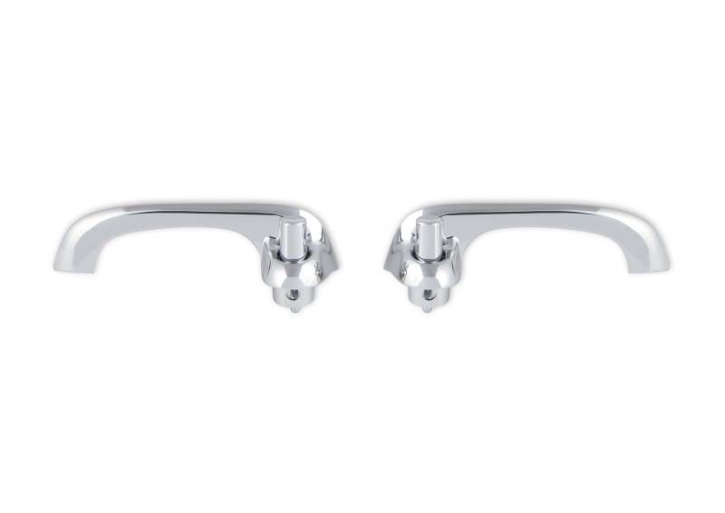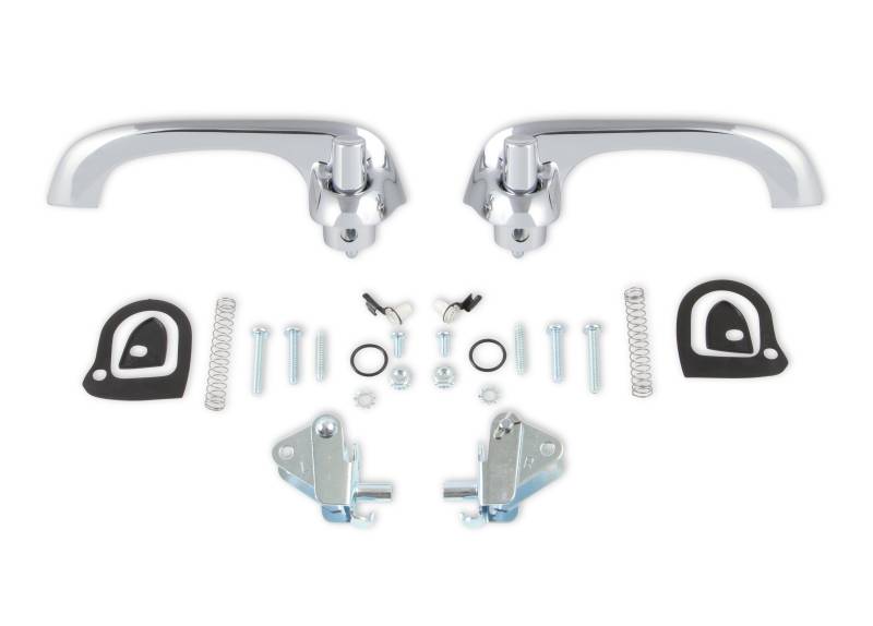 Made by Scott Drake, 1964-66 Show-Quality Door Handle Kits. This kit now includes pivot mechanisms, rod clips, and everything else you'll need for a quick and easy installation process. These kits are chrome plated and are direct fit replacements, not to mention high quality reproductions of the originals. Not many people will be able to tell that they're reproductions thanks to the premium quality craftsmanship that Scott Drake is known for. They install in the factory locations.