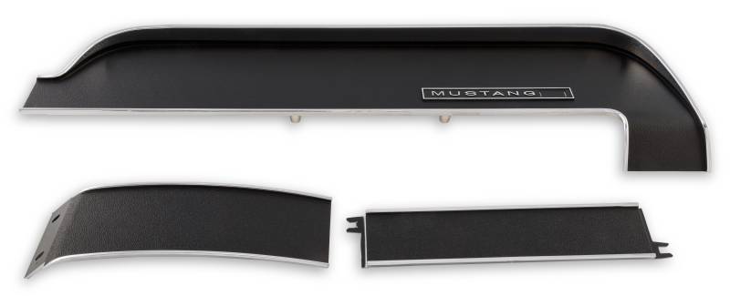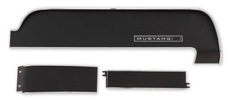 This standard dash trim kit includes all the correct pieces of trim that are located above the center of the dash and run along the passenger side of the dash above the glove box door. This high-quality, perfectly fitting standard dash trim kit is made of premium-quality injection molded plastic with beautiful chrome plating, black screened finish, and the "Mustang" logo on the center dash trim is just like a factory piece. Mounting hardware not included.