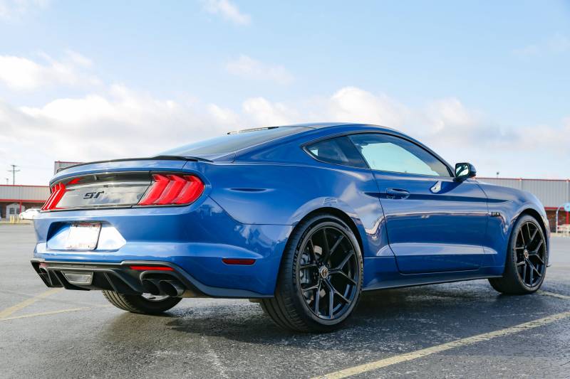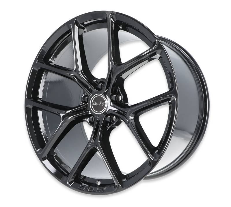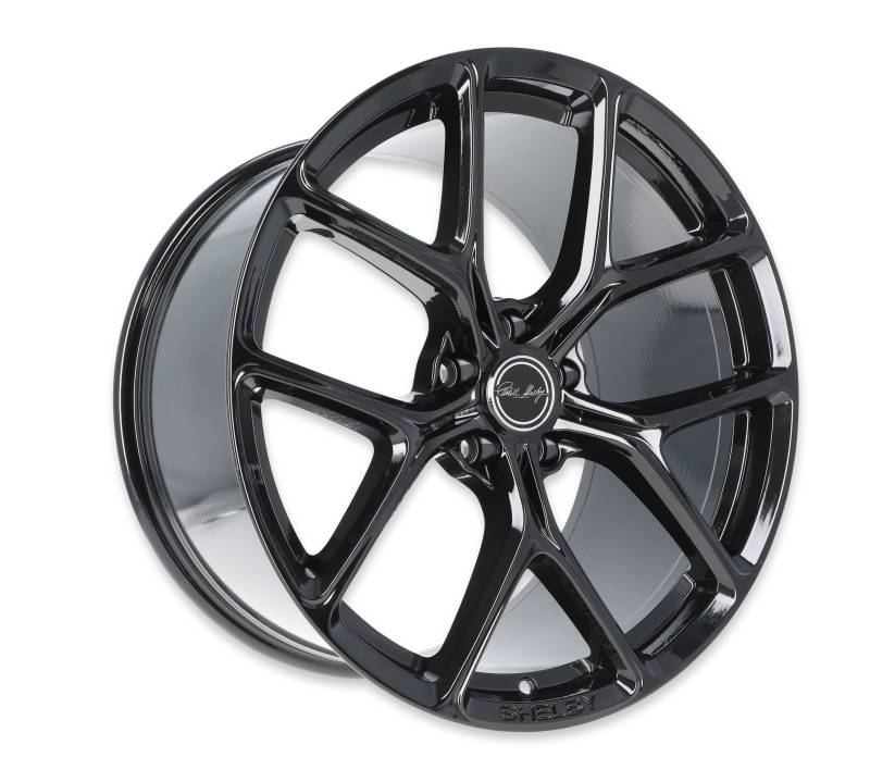 20x11", flow-formed Y spoke design emulating the Mustang Performance Pack 2 upgraded wheels. Engraved with the Shelby logo on the lip. Also available in Gunmetal and Hyper Silver, as well as a 20x9.5" for the front (if you choose to run staggered). They are compatible with most late-model, big brake systems. Offset 50; Backspace 7.94"; Bolt Pattern 5 x 114.3
