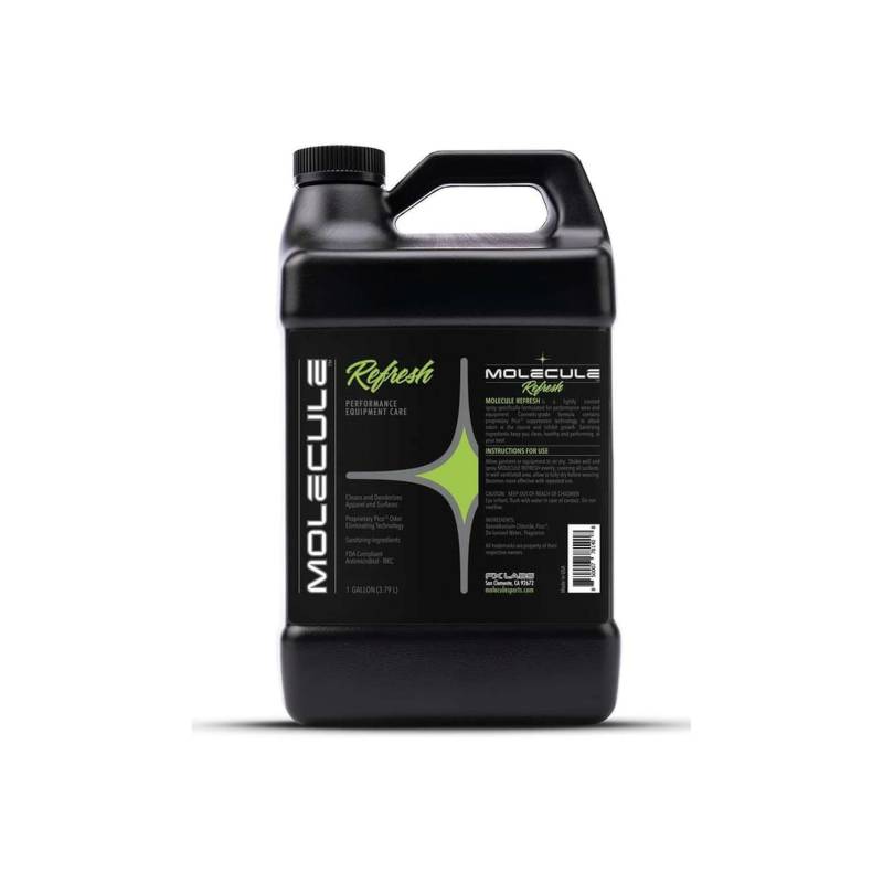 MOLECULE REFRESH is a lightly scented spray specifically formulated to deodorize performance wear and equipment. Cosmetic-grade formula contains proprietary Pico12 suppression technology to attack odors at the source and inhibit growth. Containing benzalkonium chloride (BKC) sanitizing ingredient, REFRESH keeps you clean, healthy and performing at your best.