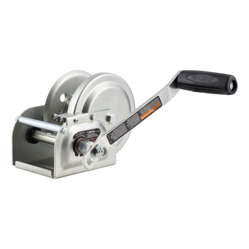 Hand-Crank Brake Winch, 1,000 lbs, 4.2:1 Gear Ratio, 7" Handle Elevate your lifting and hoisting capabilities with the CURT brake winch, a versatile solution designed for various applications. Featuring universal mounting and compatibility with most DL and Fulton winches, it seamlessly integrates into any setup, whether mounted on a light tower or lifting heavy loads in agricultural, commercial or industrial environments. Crafted from high-quality, cold-forged steel with solid gears, this winch ensures durability and reliable performance. Its 600-hour salt-spray-tested zinc plating and oil-impregnated metal bushings promote maximum corrosion resistance and smooth operation, making it a long-lasting investment for your equipment. Engineered for enduring strength, the winch's solid construction can handle even the toughest lifting tasks, with a broached pinion shaft ensuring a secure grip for confident operation. Safety is paramount with features like a locking lever and comfort grip handle for ergonomic cranking. Whether you're in agriculture, commercial or industrial settings, this winch enhances productivity while prioritizing safety. Compatible with a range of straps and cables (not included), customization options abound to suit your specific needs. Trust in the reliability and performance of a CURT brake winch for seamless operation and peace of mind, setting a new standard in durability and longevity. Universal, slotted screw holes for flexible mounting Compatible replacement for most DL and Fulton winches Ideal for lifting and hoisting applications, such as on light lifting towers Rated for 1,000 lbs. capacity High-quality, cold-forged steel construction for reliable performance