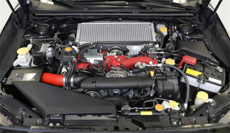 The AEM 21-836WR Performance Cold Air Intake System produces horsepower and torque gains by replacing your vehicle's restrictive factory air filter and air intake housing. This air intake system was designed, tuned and dyno-tested to fit'specific Subaru WRX STI models. Air enters the system through an oversized AEM Dryflow synthetic washable air filter for outstanding air flow, filtration and performance. The air filter is located in the original air box space and is protected by a heat shield which is designed to reduce intake air temperature and increase horsepower. The intake tubing is constructed from mandrel-bent aluminum featuring a durable textured red powder coated finish. This air intake system was developed to accommodate the engine's factory emissions control devices including the mass air flow sensor. The tapered cylinder shaped AEM Dryflow air filter is made from an oil-free, synthetic filter media that can be used for up to 100,000 miles before cleaning is needed (depending on driving conditions). The air intake system is easy to install with commonly available tools.