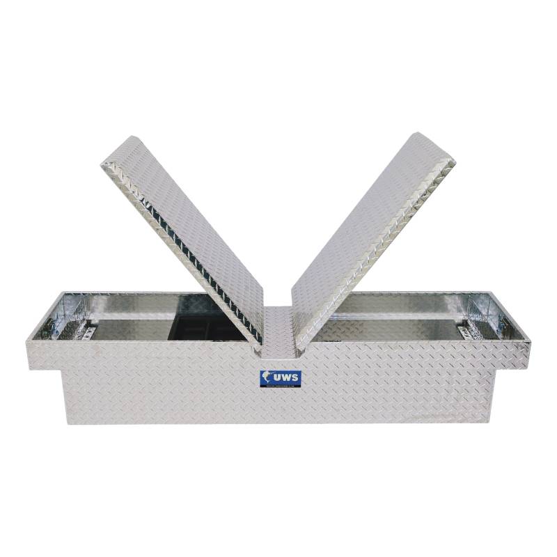 Bright Aluminum 69" Gull Wing Crossover Truck Tool Box (Heavy Packaging) UWS crossover truck tool boxes are the tried-and-true way of keeping your tools organized, on-hand and fully secure no matter where you and your truck roam. Each UWS tool box is built from extra-thick aluminum welded into a single-piece tub. This provides the tool box with reliable strength and helps keep the interior sealed off from the elements. Aluminum construction also makes the box highly resistant to corrosion for long-lasting use. This particular tool box features a gull wing top with two lockable, key-operated lids, providing convenient half-box access from either the driver side or passenger side of the truck. To give the lids reliable strength, they feature our patented RigidCore foam-filled design. Layered between two sheets of aluminum, this core greatly increases structural integrity to prevent bending and warping and to ensure smooth opening and closing. The lids also feature self-opening struts to make it easy to open the tool box when your hands are full. To keep out moisture, dirt and even insects, each lid is also fitted with a MicroSeal gasket that seals off the inside of the tool box from the outside elements. UWS crossover truck tool boxes make it easy to keep your tools and other items organized, featuring built-in screwdriver holders and a three-compartment sliding tool tray. The tool box itself is easy to install and is available in multiple sizes to provide the perfect for your truck and lifestyle. Like all UWS products, each crossover truck tool box is proudly assembled right here in the USA for style and long-lasting dependability (NOTE: This product is heavily packaged for parcel shipping). Patented RigidCore foam-filled lids to maximize strength and prevent binding Two lids with locking handles provide secure, half-box access 0.058" extra-thick, one-piece aluminum tub holds heavy tools and cargo Stainless steel lock handles for security and corrosion-resistant operation MicroSeal gasket helps seal out moisture, dust and dirt