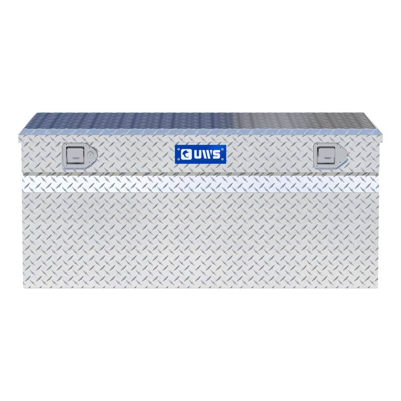 Bright Aluminum 48" Utility Chest Box (Heavy Packaging) UWS utility chest boxes provide unbeatable storage and security for your items, whether in the shop, at home or on the job. Each box features a corrosion-resistant aluminum construction, a stainless steel locking system, a patented RigidCore foam-filled lid and integrated tool storage -- all to keep your equipment and valuables safe, well-organized and easily accessible whenever needed. Each UWS tool box and storage box is constructed from extra-thick aluminum for increased structural strength. The tub is welded together into a single piece for weather resistance and to easily hold heavy tools and other items. The lid features a patented foam core, sandwiched between two aluminum plates. This core greatly increases the rigidity of the lid and helps prevent bending and warping, making operation very smooth. The locking mechanism of the UWS truck tool box provides excellent security for your items, featuring stainless steel, key-operated paddle handles. Stainless steel construction supplies the locks with long-lasting corrosion resistance, and they feature an internal connecting rod that allows the lid to be opened from either side of the truck. For solid protection against the elements, the lid also has a MicroSeal gasket, blocking moisture, dust and insects from getting inside and damaging your valuables. The lid also opens a full 90 degrees for easier access, and it is equipped with self-opening struts for convenient operation when your hands are full. UWS utility chest boxes are available in multiple sizes to accommodate any storage need. Like all UWS products, each one is proudly assembled right here in the USA for style and long-lasting dependability (NOTE: This product is heavily packaged for parcel shipping). 0.058" extra-thick, one-piece aluminum tub holds heavy tools and cargo Lid self-opens to 90 degrees for convenient operation and loading Stainless steel lock handles for security and corrosion-resistant operation Limited lifetime warranty (one-year finish, one-year parts) Patented RigidCore foam-filled lid to maximize strength and prevent binding
