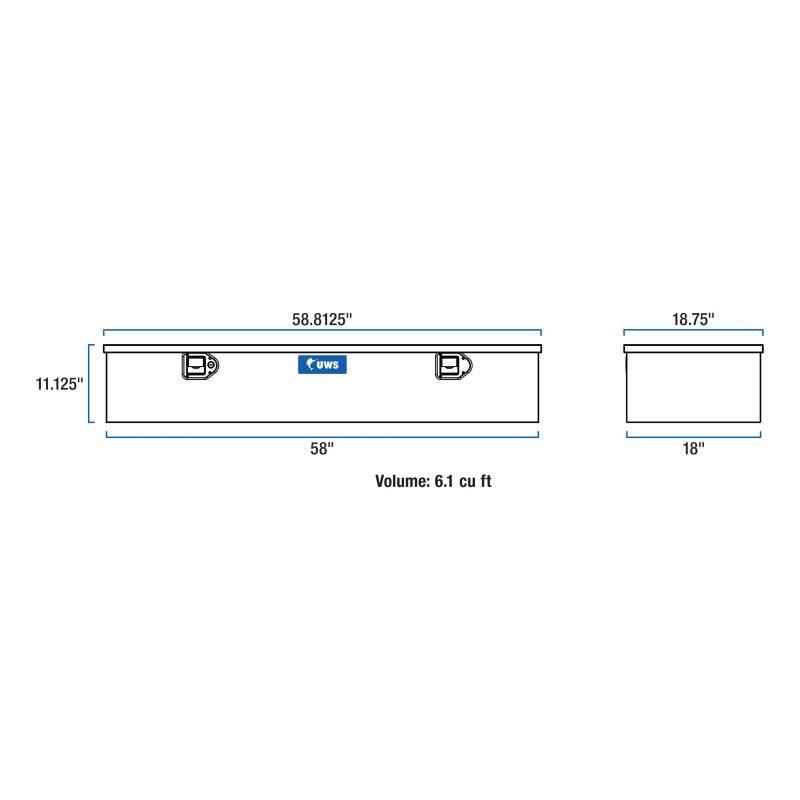 Matte Black Aluminum 58" 5th Wheel Truck Tool Box (LTL Shipping Only) UWS 5th wheel truck tool boxes provide unbeatable storage and security for your items in the bed of your truck. Each box features a corrosion-resistant aluminum construction, a stainless steel locking system and a patented RigidCore foam-filled lid -- all to keep your equipment and valuables safe, we ll-organized and easily accessible whenever needed. This particular 5th wheel tool box is designed to be used when towing a 5th wheel trailer. It is built with a low profile to provide clearance for the 5th wheel trailer overhang. Each UWS truck tool box is constructed from extra-thick aluminum for increased structural strength. The tub is welded together into a single piece for weather resistance and to easily hold heavy tools and other items. The lid features our patented RigidCore foam-filled design, sandwiched between two aluminum plates. This greatly increases the strength of the lid and helps prevent bending and warping, making operation very smooth. The locking mechanism of the UWS 5th wheel tool box provides excellent security for your items, featuring stainless steel, key-operated paddle handles. Stainless steel construction supplies the locks with long-lasting corrosion resistance, and they feature an internal connecting rod that allows the lid to be opened from either side of the truck. For solid protection against the elements, the lid also has a MicroSeal gasket, blocking moisture, dust and insects from getting inside and damaging your valuables. The lid also opens a full 90 degrees for easier access, and it is equipped with self-opening struts for convenient operation when your hands are full. UWS truck tool boxes are available in multiple sizes to accommodate any storage need. Like all UWS products, each one is proudly assembled right here in the USA for style and long-lasting dependability.