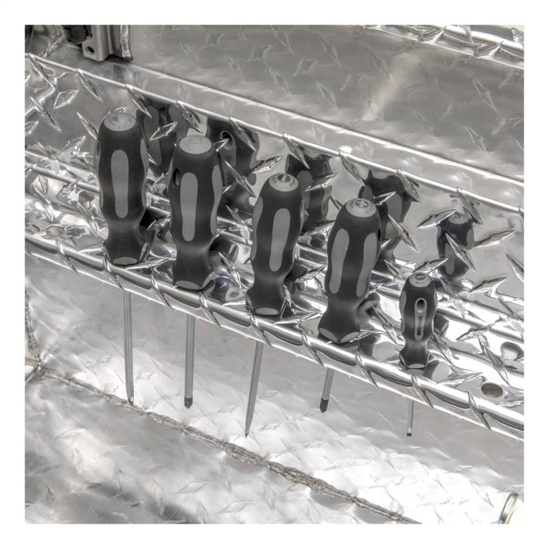 Bright Aluminum 63" Crossover Truck Tool Box, Low Profile (LTL Shipping Only) UWS crossover truck tool boxes are the tried-and-true way of keeping your tools organized, on-hand and fully secure no matter where you and your truck roam. Each UWS tool box is built from extra-thick aluminum welded into a single-piece tub. This provides the tool box with reliable strength and helps keep the interior sealed off from the elements. Aluminum construction also makes the box highly resistant to corrosion for long-lasting use. To add even more strength to the crossover truck tool box, the lid features our patented RigidCore foam-filled design. Layered between two sheets of aluminum, this core greatly increases the structural integrity of the lid to prevent bending and warping and to ensure smooth opening and closing. The lid is able to open to a full 90 degrees, providing better access to tools, equipment and other stored items. It also features self-opening struts to make it easy to open the box when your hands are full. This particular truck tool box features a low profile, meaning the lid is built lower than our standard lid. This provides a better view out the rear cab window and additional clearance for other items in the truck bed, if needed. To keep out moisture, dirt and even insects, the lid is also fitted with a MicroSeal gasket that seals off the inside of the tool box from the outside elements. UWS crossover truck tool boxes make it easy to keep your tools and other items organized, featuring built-in screwdriver holders and a three-compartment sliding tool tray. The tool box itself is easy to install and is available in multiple sizes to provide the perfect for your truck and lifestyle. Like all UWS products, each crossover truck tool box is proudly assembled right here in the USA for style and long-lasting dependability. Interior rod enclosure helps prevent bending or jamming of lock system Easy to install with pre-drilled mounting slots and included hardware Multiple box sizes available for a custom fit on each truck application 0.058" extra-thick, one-piece aluminum tub holds heavy tools and cargo Limited lifetime warranty (one-year finish, one-year parts)