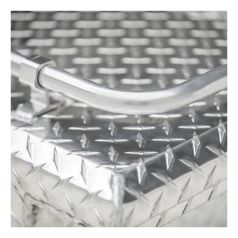 Bright Aluminum 72" Crossover Truck Tool Box with Rail UWS crossover truck tool boxes are the tried-and-true way of keeping your tools organized, on-hand and fully secure no matter where you and your truck roam. Each UWS tool box is built from extra-thick aluminum welded into a single-piece tub. This provides the tool box with reliable strength and helps keep the interior sealed off from the elements. Aluminum construction also makes the box highly resistant to corrosion for long-lasting use. To add even more strength to the crossover truck tool box, the lid features our patented RigidCore foam-filled design. Layered between two sheets of aluminum, this core greatly increases the structural integrity of the lid to prevent bending and warping and to ensure smooth opening and closing. The lid is able to open to a full 90 degrees, providing better access to tools, equipment and other stored items. It also features self-opening struts to make it easy to open the box when your hands are full. To keep out moisture, dirt and even insects, the lid is also fitted with a MicroSeal gasket that seals off the inside of the tool box from the outside elements. UWS crossover truck tool boxes make it easy to keep your tools and other items organized, featuring built-in screwdriver holders and a three-compartment sliding tool tray. This particular box also features a welded rail on the lid, providing a solid tie-down anchor for securing additional cargo on top. The tool box itself is easy to install and is available in multiple sizes to provide the perfect for your truck and lifestyle. Like all UWS products, each crossover truck tool box is proudly assembled right here in the USA for style and long-lasting dependability. Stainless steel lock handles for security and corrosion-resistant operation Lid self-opens to 90 degrees for convenient operation and loading Multiple box sizes available for a custom fit on each truck application MicroSeal gasket helps seal out moisture, dust and dirt Interior rod enclosure helps prevent bending or jamming of lock system