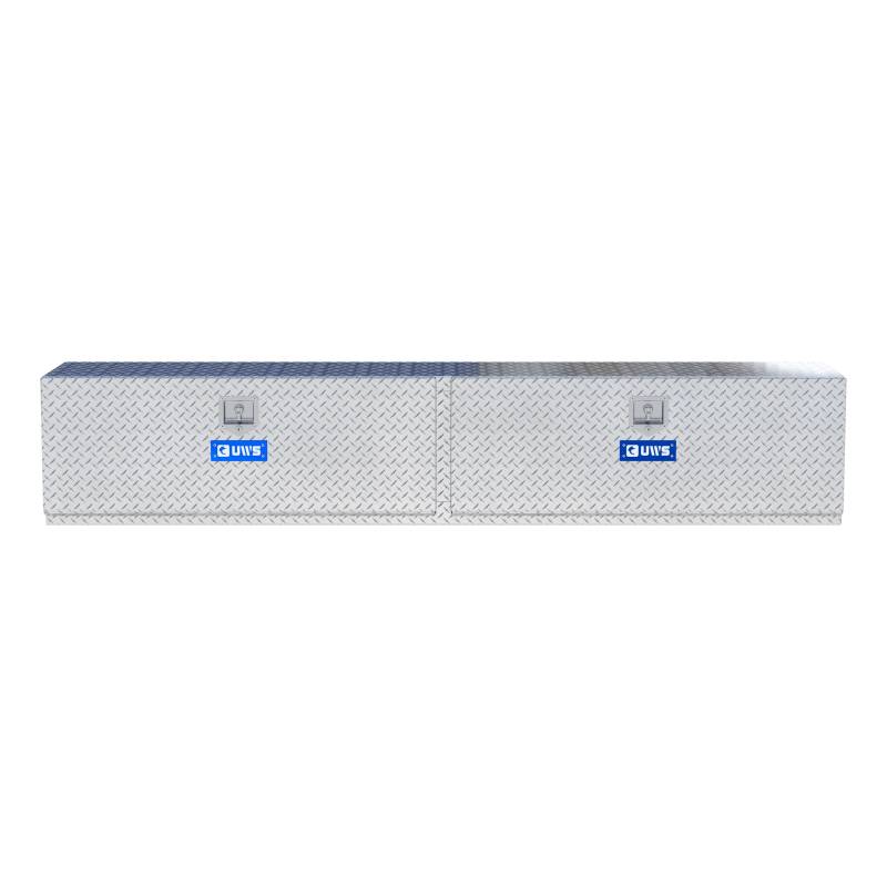 Bright Aluminum 96" Double-Door Underbody Tool Box UWS underbody tool boxes provide unbeatable storage and security for your items under the bed of your truck or trailer. The box conveniently mounts underneath the bed of a flatbed truck, dump truck or trailer, leaving more space on top of the bed for other cargo. Each box features a corrosion-resistant aluminum construction, heavy-duty cable door supports and a stainless steel locking system -- all to keep your equipment and valuables safe and easily accessible whenever needed. Each UWS underbody tool box is constructed from extra-thick aluminum for increased structural strength. The tub is welded together into a single piece for weather resistance and to easily hold heavy tools and other items. The doors feature aircraft-grade stainless steel cables, rated to support up to 1,000 lbs., ensuring reliable strength and door operation. The locking mechanism of this underbody truck tool box provides excellent security for your items, featuring stainless steel, key-operated T-handles. Stainless steel construction supplies the locks with long-lasting corrosion resistance, and the doors also have a MicroSeal stripping, blocking moisture, dust and insects from getting inside and damaging your valuables. The doors also open a full 90 degrees for easier access. UWS truck tool boxes are available in multiple sizes to accommodate any storage need. Like all UWS products, each one is proudly assembled right here in the USA for style and long-lasting dependability. Stainless steel cables for strong door support Doors open 90 degrees for easy loading and unloading of tools and equipment Stainless steel T-handles for security and corrosion resistance MicroSeal gasket helps seal out moisture, dust and dirt 1" drip rail completely encompasses door opening to resist water infiltration