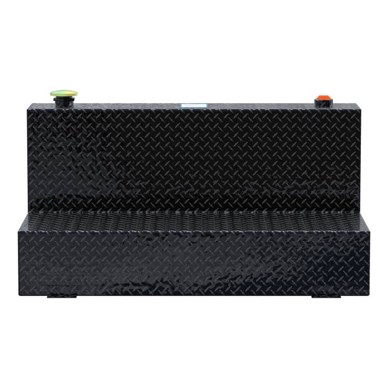 Gloss Black 75-Gallon L-Shape Aluminum Transfer Tank UWS transfer tanks offer the perfect solution for transporting chemicals, solutions and other non-flammable liquids to your next jobsite. Each tank features corrosion-resistant aluminum construction, a commercial-grade ventilation cap and an optimal fit and capacity to suit your truck and lifestyle. The heavy-duty .125" thick aluminum alloy construction provides the tank with structural strength, while keeping it lightweight and resilient to corrosion. The commercial-grade vented cap allows for proper ventilation of the liquid contents, and the tank is also equipped with commercial-grade mounting flanges for maximum strength in the truck bed. UWS transfer tanks are available in multiple sizes to accommodate any job. Like all UWS truck tool boxes, this product is proudly assembled right here in the USA for style and long-lasting dependability. NOTE: This tank is DOT-compliant for transporting Class 3 combustible fuels only, such as diesel. Transfers diesel or other non-flammable liquids to on-site vehicles or equipment Lockable, commercial-grade vented cap with reinforced collar for added security Internal baffles for added extra strength and an even flow of liquid Multiple tank sizes available for a custom fit on each truck application Heavy-duty .125" aluminum alloy tank is 100% pressure-tested for safety