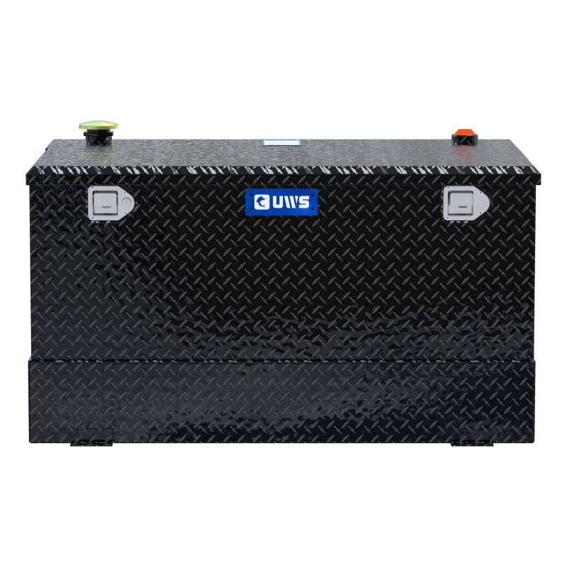 Gloss Black 85-Gallon Combo Aluminum Transfer Tank UWS transfer tanks offer the perfect solution for transporting chemicals, solutions and other non-flammable liquids to your next jobsite. Each tank features corrosion-resistant aluminum construction, a commercial-grade ventilation cap and an optimal fit and capacity to suit your truck and lifestyle. The heavy-duty .125" thick aluminum alloy construction provides the tank with structural strength, while keeping it lightweight and resilient to corrosion. The commercial-grade vented cap allows for proper ventilation of the liquid contents, and the tank is also equipped with commercial-grade mounting flanges for maximum strength in the truck bed. This particular transfer tank is a combination unit, meaning it has a built-in truck tool box to keep your equipment and valuables safe, well-organized and easily accessible whenever needed. The tool box is constructed from extra-thick aluminum for increased structural strength and is welded together into a single piece. The lid features a patented RigidCore foam-filled design, sandwiched between two aluminum plates. This greatly increases lid strength and helps prevent bending and warping. The locking mechanism of this transfer tank tool box provides excellent security for your items, featuring stainless steel, key-operated paddle handles. Stainless steel construction supplies the locks with long-lasting corrosion resistance, and they feature an internal connecting rod that allows the lid to be opened from either side of the truck. UWS transfer tanks are available in multiple sizes to accommodate any job. Like all UWS truck tool boxes, this product is proudly assembled right here in the USA for style and long-lasting dependability. NOTE: This tank is DOT-compliant for transporting Class 3 combustible fuels only, such as diesel. Patented RigidCore foam-filled lid to maximize strength and prevent binding Stainless steel lock handles for security and corrosion-resistant operation Heavy-duty .125" aluminum alloy tank is 100% pressure-tested for safety Connecting rod allows for convenient operation from driver or passenger side Multiple tank sizes available for a custom fit on each truck application