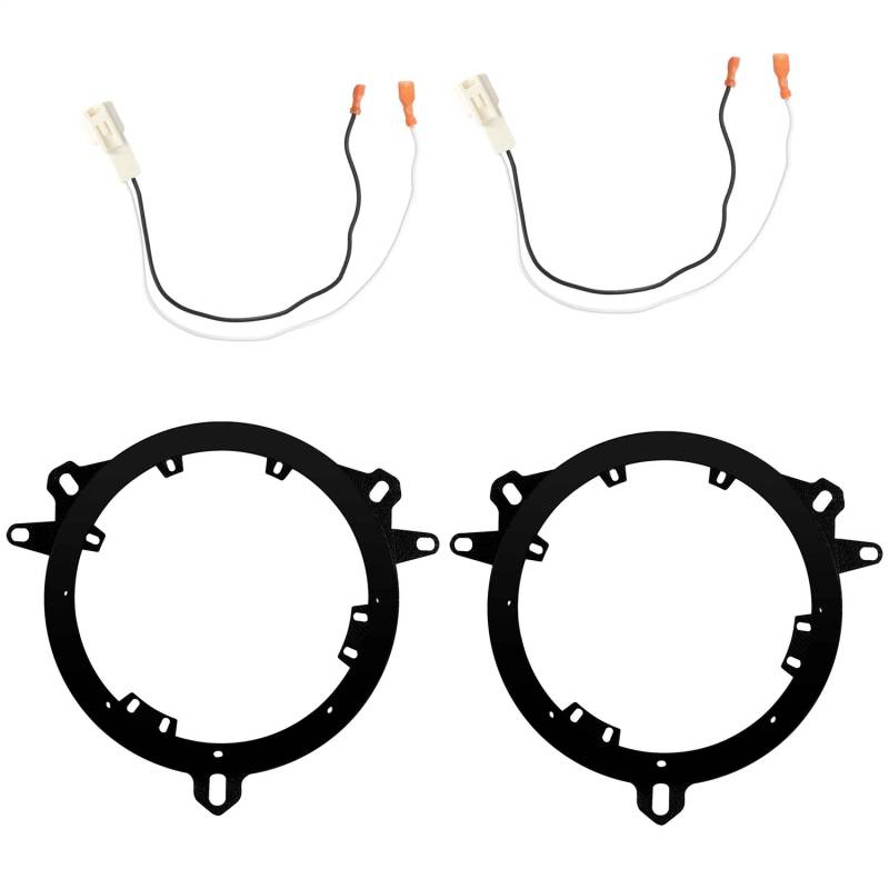 Metra 82-TY1 6.5-6.75in Speaker Adapter/harness Toyota 13-20 Front or Rear Metra 82-TY1 combo speaker adapter and speaker wire harness kit for Toyota 2013-2020 models in the front or rear location. New premium speaker adapters kits that allow the installer to easily replace a pair of speakers in a vehicle with one convenient kit. This kit will include speaker adapter plates that allow fitment for most popular aftermarket speaker brands and allows for a direct size replacement of the factory speaker. No need for cutting or modification to the door panels or side panels of the vehicle. Also included is a pair of speaker harnesses that maintain the factory wiring in the vehicle and easy install for the aftermarket speaker. Designed for installation of aftermarket 6.5" to 6.75" speakers. ABS Speaker Adapter Plates/Pair Speaker Adapter Harnesses/Pair One Convenient Package To Assist In Replacing A Pair Of Speakers Designed For Installation Of 6.5 in. To 6.75 in. Speakers