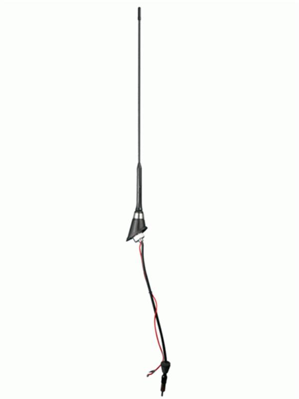 Metras Antennaworks aftermarket antennas are designed and engineered as a complete system that functions seamlessly in every application and every weather condition. Metras 44-UA30 15 in. (38cm) black helical wind removable fiberglass Amplified Roof Mount Antenna mast - European Look.