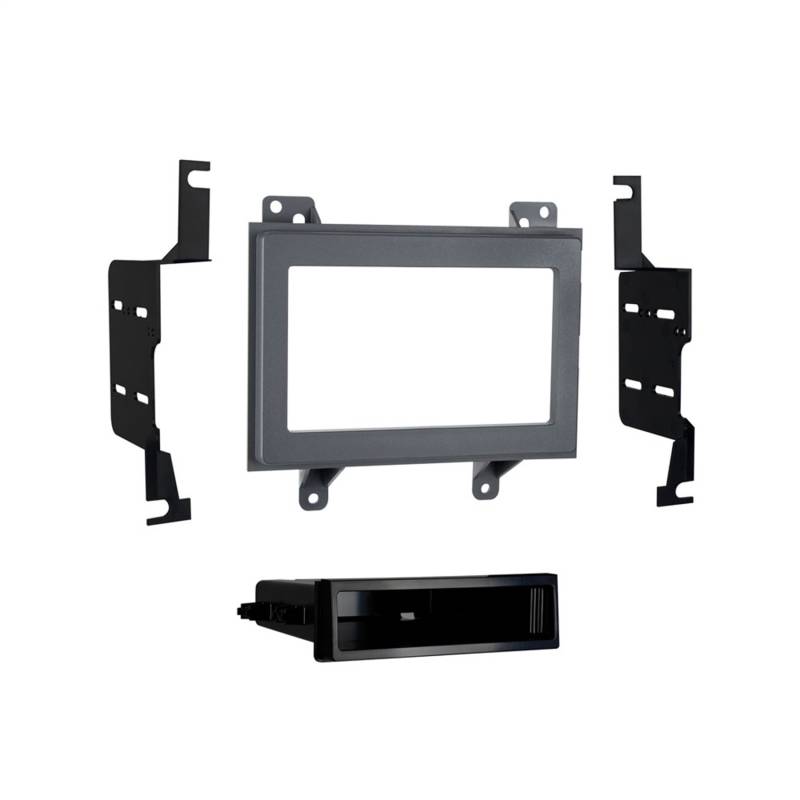 Radio installation kit used when replacing the OEM radio with an aftermarket radio. This kit has provision for a double DIN radio , painted gloss charcoal for a factory finish.