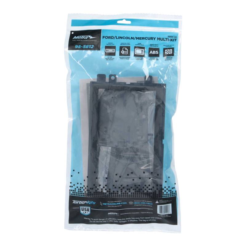 95-5812 Aftermarket radio installation kit DDIN Ford 04-19 Metra 95-5812 aftermarket radio installation kit for select Ford 2004-2019 models. Radio installation kit contoured to match the OEM dash opening left when removing the OEM radio. With our installation kit install your aftermarket radio and install our kit for a factory finish look. Aftermarket Radio installation kit used when replacing the OEM radio. Install kit is contoured to match the OEM dash and have a factory look and finish. This stereo installation kit is engineered to help you install an aftermarket 4in tall (Double-DIN) radio into the original vehicle dashboard. This dash kit helps make radio replacement simple and is designed to match the original look and feel of the vehicle dashboard. Installing an aftermarket radio can upgrade the sound quality and provide additional features the original factory radio could not offer but requires this dash kit to make it fit. Recessed DIN Opening Metras Patented Snap-In ISO Support System Contoured To Match Factory Dashboard Stereo installation kit designed to fit any standard 4in tall aftermarket radio Made from the highest quality ABS plastic for an original factory-like fit and finish