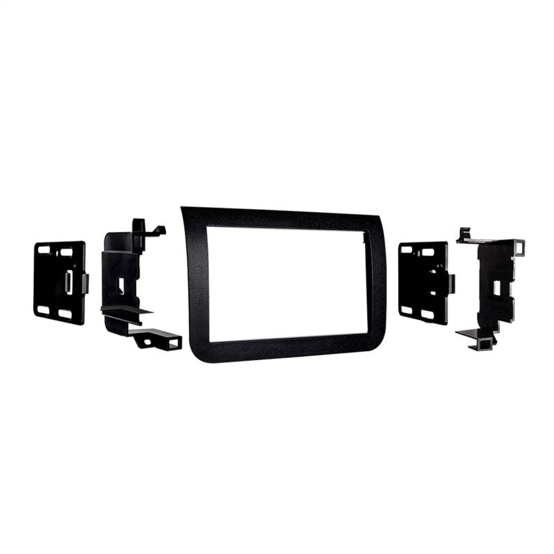 Radio installation kit used when replacing the OEM radio with an aftermarket radio. This kit has provision for a double DIN radio , painted gloss charcoal for a factory finish.