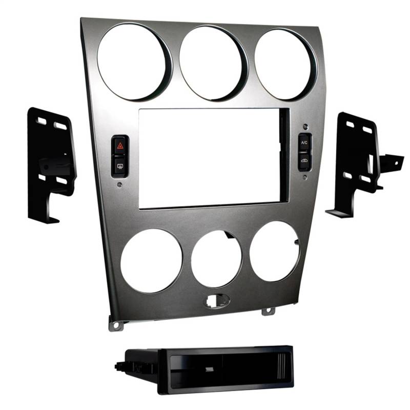 Radio installation kit used when replacing the OEM radio with an aftermarket radio. This kit has provision for a double DIN radio , painted gloss charcoal for a factory finish.