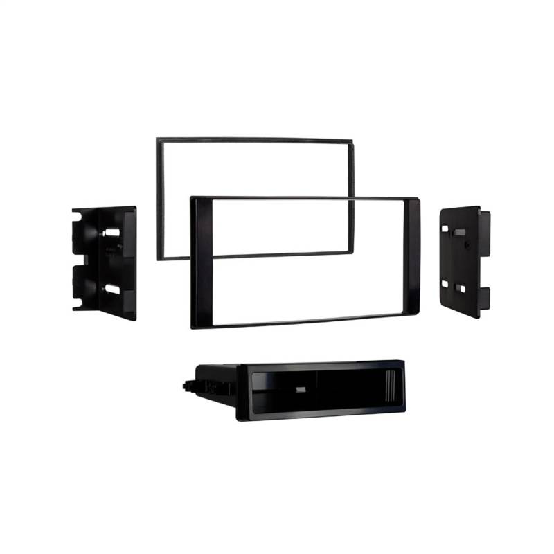 Radio installation kit used when replacing the OEM radio with an aftermarket radio. This kit has provision for a double DIN radio , painted gloss charcoal for a factory finish.