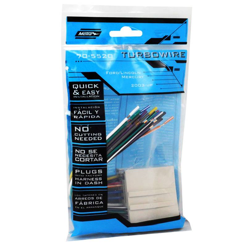 Metra Aftermarket Radio Wire Harness for Ford/Hyundai/Land Rover/ Mercury 03-19 Metra 70-5520 Aftermarket Radio Wire Harness for Ford/Hyundai/Land Rover/ Mercury 2003-2019 Models. Install a new car radio faster with this wiring harness that plugs right into the vehicle's connectors, allowing you to hook up the radio into the vehicle's electrical system. On one side, the wiring harness is color-coded with wires that you'll connect or solder into the aftermarket radio/receiver. The other side has a vehicle-specific adapter that connects directly into the original radio connectors for a quicker installation without having to cut each of the wires. Keep in mind that you may need additional parts to complete your installation, including a dash kit, antenna adapter, and, depending on your vehicle, a special interface adapter to retain audio controls on your steering wheel or other important vehicle functions like navigation, video, and more. Look up your vehicle for more information. Wiring harness for fast and easy radio installation Plugs into the car's original radio connectors on one side To retain the factory AV/DVD, use 70-5520AV in addition Color-coded wires on the other side are connected to the aftermarket radio No wire cutting needed for factory radio connectors