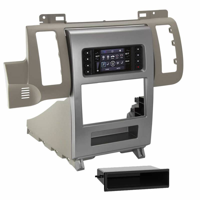 Metra 99-5842T Radio Installation Kit for Ford Flex (without nav) 2010-2012 Metra 99-5842T Aftermarket Single/Double DIN Radio Installation Kit for Ford Flex (without nav) 2010-2012. This stereo installation kit has been engineered to help you install either a 2” tall (Single-DIN) or a 4” tall (Double-DIN) aftermarket radio into the original vehicle dashboard. This dash kit makes radio replacement simple and comes with a pocket that is installed below the 2” radio to fill the extra space in the radio opening, which can be used for storage. The pocket is not needed when installing a 4” tall radio. The dash kit is painted scratch-resistant tan with black trim to match the original look and feel of the vehicle’s dashboard.This kit provides integrated controls for the info center and a touchscreen display for climate and personalization features. included interface for audio – climate and steering wheel functions along with SYNC and backup camera outputs. Installing an aftermarket radio can upgrade the sound quality and provide additional features the original factory radio couldn’t offer but requires this dash kit to make it fit. ISO DIN radio provision with pocket ISO DDIN radio provision Integrated controls for info center Touchscreen display for climate and personalization features Center panel painted silver with tan or black trim