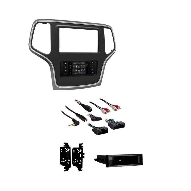 Metra 99-6536S Aftermarket DIN/DDIN Radio Install kit Jeep Grand Cherokee 14-21 Metra 99-6536S Aftermarket DIN/DDIN Radio Installation kit For Jeep Grand Cherokee 2014-2021. This stereo installation kit has been engineered to help you install either a 2” tall (Single-DIN) or a 4” tall (Double-DIN) aftermarket radio into the original vehicle dashboard. This dash kit makes radio replacement simple and comes with a pocket that is installed below the 2” radio to fill the extra space in the radio opening, which can be used for storage. The pocket is not needed when installing a 4” tall radio. Dash kit has built in touchscreen display for climate controls and personalization features. Includes data interface wire harness and retains steering wheel controls and backup camera. Installing an aftermarket radio can upgrade the sound quality and provide additional features the original factory radio couldn’t offer but requires this dash kit to make it fit. ISO DIN radio provision with pocket ISO DDIN radio provision Retains audio controls on the steering wheel Retains the factory backup camera Touchscreen display for climate and personalization features