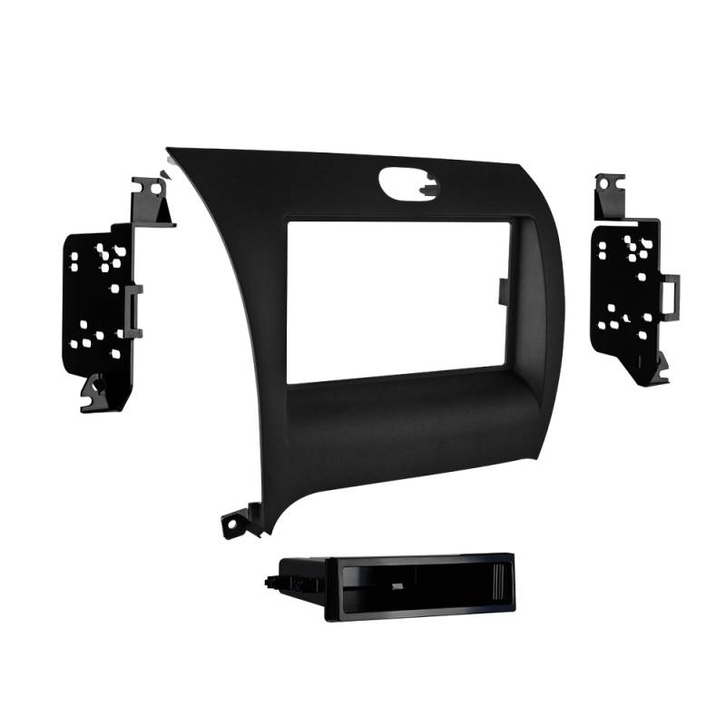 Metra 99-7356B Aftermarket Radio Installation kit For KIA Forte 2014-2018 Metra 99-7356B Aftermarket DIN Radio Installation kit For KIA Forte 2014-2018. This stereo installation kit has been engineered to help you install a 2” tall (Single-DIN) aftermarket radio into the original vehicle dashboard. This dash kit makes radio replacement simple and comes with a pocket that is installed below the 2” radio to fill the extra space in the radio opening, which can be used for storage. The dash kit is painted scratch-resistant matte black to match the original look and feel of the vehicle’s dashboard. Installing an aftermarket radio can upgrade the sound quality and provide additional features the original factory radio couldn’t offer but requires this dash kit to make it fit. Stereo installation kit designed to fit any standard 2” tall aftermarket radio Painted scratch-resistant matte black Retains the factory hazard button Made from the highest quality ABS plastic for an original factory-like fit and finish Includes brackets and hardware parts needed with detailed installation instructions
