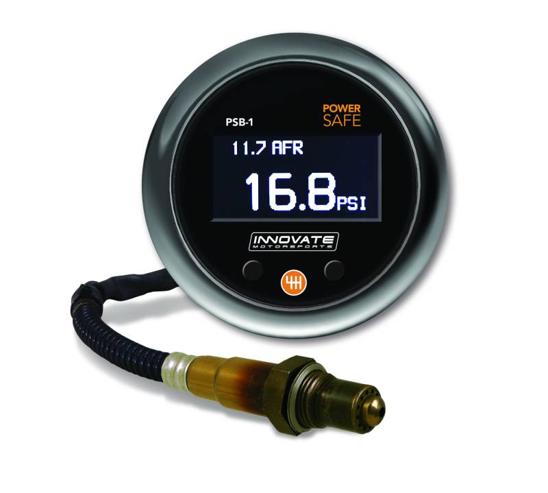 PSB-1 PowerSafe Boost & Wideband O2 Gauge Kit The Powersafe Gauges Combine Innovate Motorsports Patented Directdigital O2 Sensor Control Technology With Application Specific Sensors, An Oled Display, And A Smart Safety Override Circuit For Your High Performance Vehicle. Innovate Powersafe Technology Can Disable Your Factory Or Aftermarket Boost Control Solenoid Forcing The System To Spring Pressure. In Nitrous Applications, Powersafe Technology Will Disable Your Nitrous Solenoid To Keep Your Engine Safe. The Powersafe Gauges Offer The Looks, Safety And Performance Enthusiasts Demand! Includes Innovate Mts Serial Comms For Use With Mts Enabled Devices To Add Additional Logging Channels For Analysis With Powerful Logworks Pc Software.