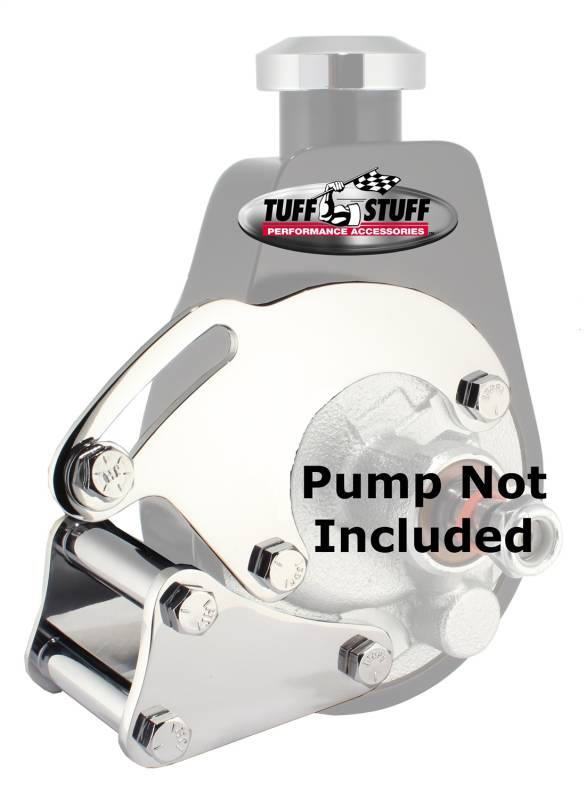 Power Steering Pump Bracket; Long; Fits Tuff Stuff Saginaw Style Power Steering Pumps; w/Hardware; Chrome;