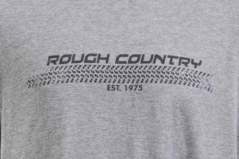 Wear your Rough Country pride like a badge of honor with Rough Country's Horizontal Tread T-shirt. This comfortable shirt features a Rough Country logo, off-road tread pattern, and "Est. 1975" date printed across the front.This t-shirt features a stylish and comfortable heather fabric style for exceptional good looks and a long lifespan. This tri-blend tee includes a tagless design for a more comfortable feel.