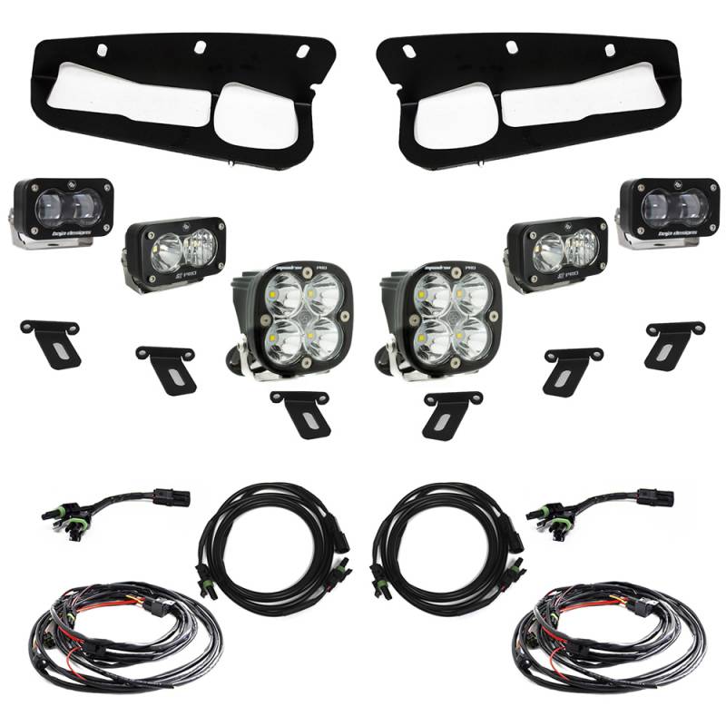 Ford Bronco S2 SAE “Pro” Fog Pocket Light Kit The new Ford Bronco is a great platform that deserves an equally great light kit. That’s why we are proud to offer the new S2 SAE "Pro" fog pocket light kit designed specifically for the factory Bronco Steel Bumper. Light up the trail and differentiate yourself from the pack with this kit that includes our next generation S2 SAE, S2 Pro in driving combo, and Squadron Pro in spot configuration providing max distance. Introducing our next light to our SAE series, the S2 SAE. Equipped with aspheric projector optics, advanced LED technology, and impressive output make it the perfect road-legal auxiliary fog light delivering an impressive 1,210 lumens per light with an output reaching up to 5712 candela (measured) at just 12.42W. Designed to meet SAE J583 fog lamp requirements, the S2 SAE is fully compliant with road regulations and allows for a highly controlled light pattern with a sharp cutoff making them an ideal choice for driving through dust, fog, and inclement weather. Paired with our popular S2 Pro (2,245 lumens) and Squadron Pro (4,095 lumens) for the best in off-road performance giving your Bronco max illumination anywhere you drive. This is comprehensive kit comes with everything you need for a quick install and does not require any additional parts. Backed by our 30 day satisfaction guarantee and limited lifetime warranty* for the ultimate in purchase protection. *NOTE: uService® is NOT a feature of all SAE products. If tampered, it will void the warranty. Our Limited Lifetime Warranty is valid only if sent back for repairs. SKU: 448175/448179 includes: (2) S2 Pro, Driving/Combo (2) Squadron Pro, Spot (2) S2 SAE, Clear Spot or S2 SAE, Amber Spot (8) Mounting Bracket (2) On/Off Wiring Harness (4) Splitter Harness All necessary hardware SKU: 448175UP/448179UP Includes: (2) S2 Pro, Driving/Combo (2) Squadron Pro, Spot (2) S2 SAE, Clear Spot or S2 SAE, Amber Spot (8) Mounting Bracket (2) Upfitter Wiring Harness (4) Splitter Harness All necessary hardware