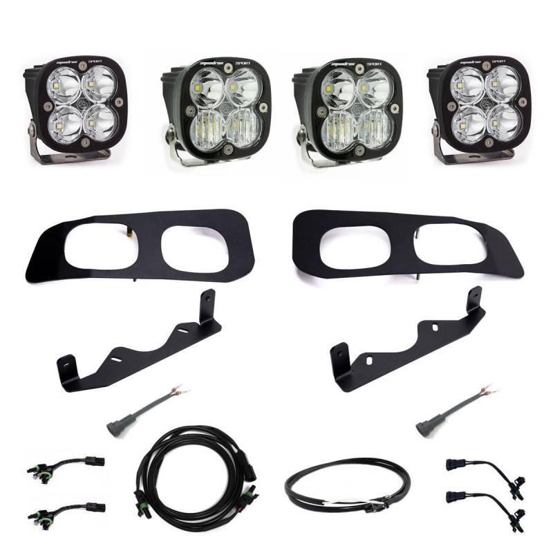 Ford Squadron Sport Dual Fog Pocket Light Kit The Baja Designs Squadron Sport "Sportsmen" dual fog pocket LED light kit for the 2023-on Ford F-250/350 Super Duty will separate your truck from the rest of the pack, offering an off-road capable light package to light up the trails. Enhance your stock fog lights with this versatile four-light kit, complete with mounting brackets, an option for a toggle switch or upfitter wiring harness, and all essential components for a hassle-free installation. Our fog pocket kits have been designed specifically for the 2023-on Super Duty trucks, improving visibility on the trail and safety in conditions such as dust, fog, rain or snow. For the optimum visibility while on the trails, the four Squadron Sports offers 3,162 raw lumens each, with a mixture of spot and driving combo lens patterns to illuminate zones 1-4 while on the trails. This makes your driving experience safer and more enjoyable. Have the assurance with our 30-day satisfaction guarantee and lifetime limited warranty, providing unparalleled protection for your investment.